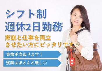 | calendar_today休日・休暇 | 週休2日制※シフト制にて (年間休日数 106日) |